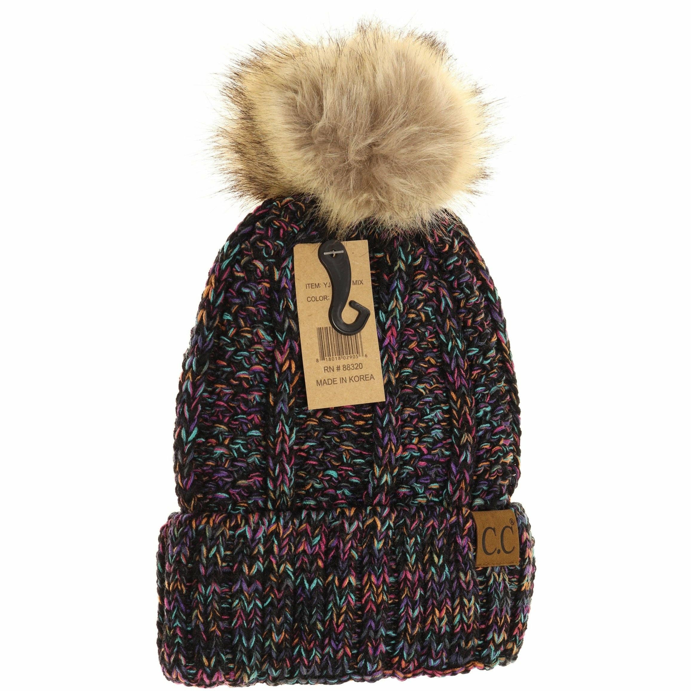 This very popular fuzzy lined fur pom beanie now comes in a multi tone color mix! The mixed tone of this hat along with a popular fur pom and warm lining will make this a great addition to your beanie collection!