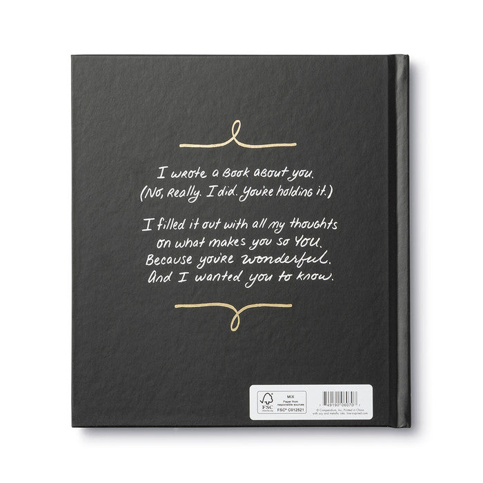 Sweet, fun, and lighthearted, I Wrote a Book About You is designed to be filled out by you and given to someone you like a lot—a spouse, a sibling, a very good friend.