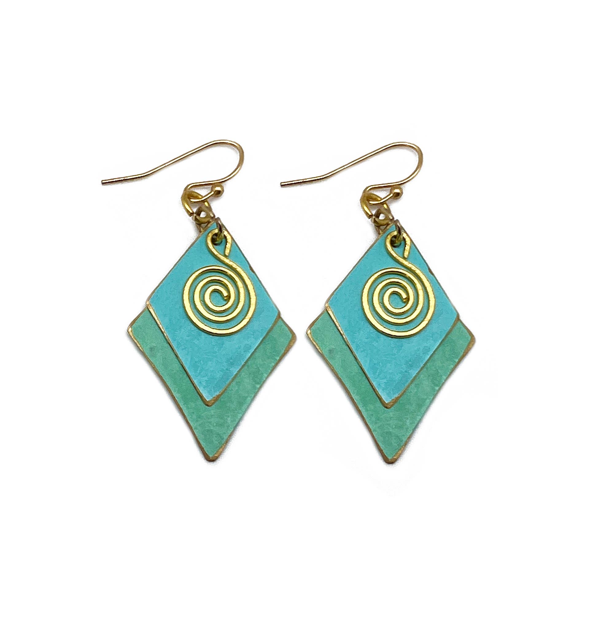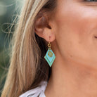 Brass Patina Earrings - Green and Blue Layered Diamonds