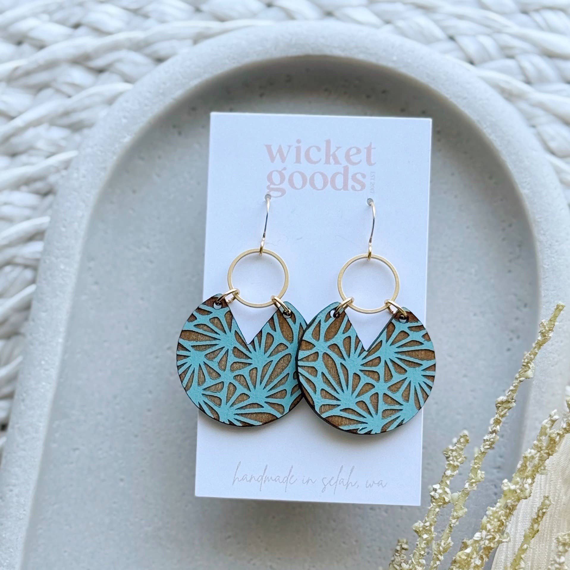- Made from hand painted basswood, raw brass, and hypoallergenic gold-plated brass ear wires.