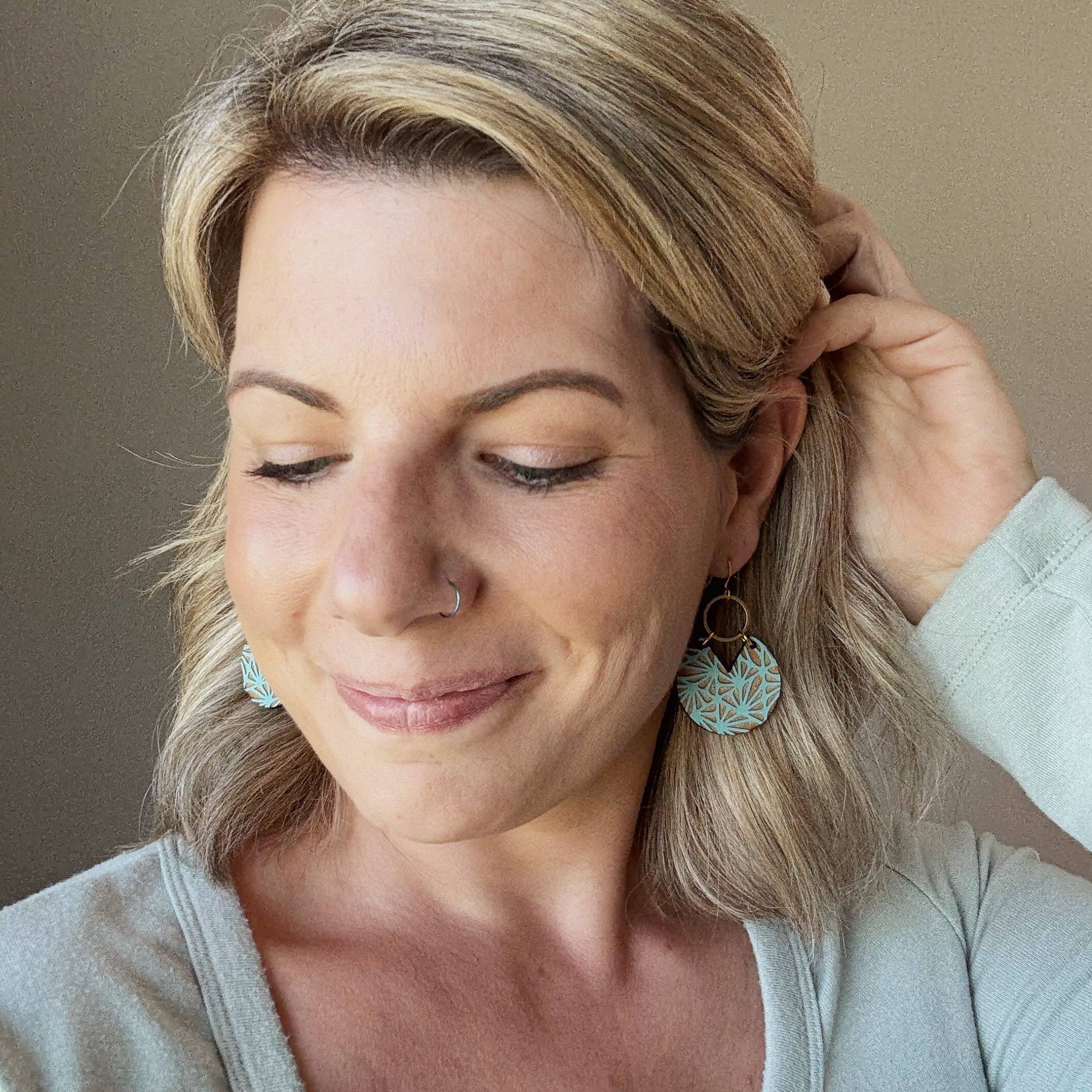 Kleya features a unique organic etched design paired with hand brushed brass. These beautiful drops are the perfect way to make a bold statement.