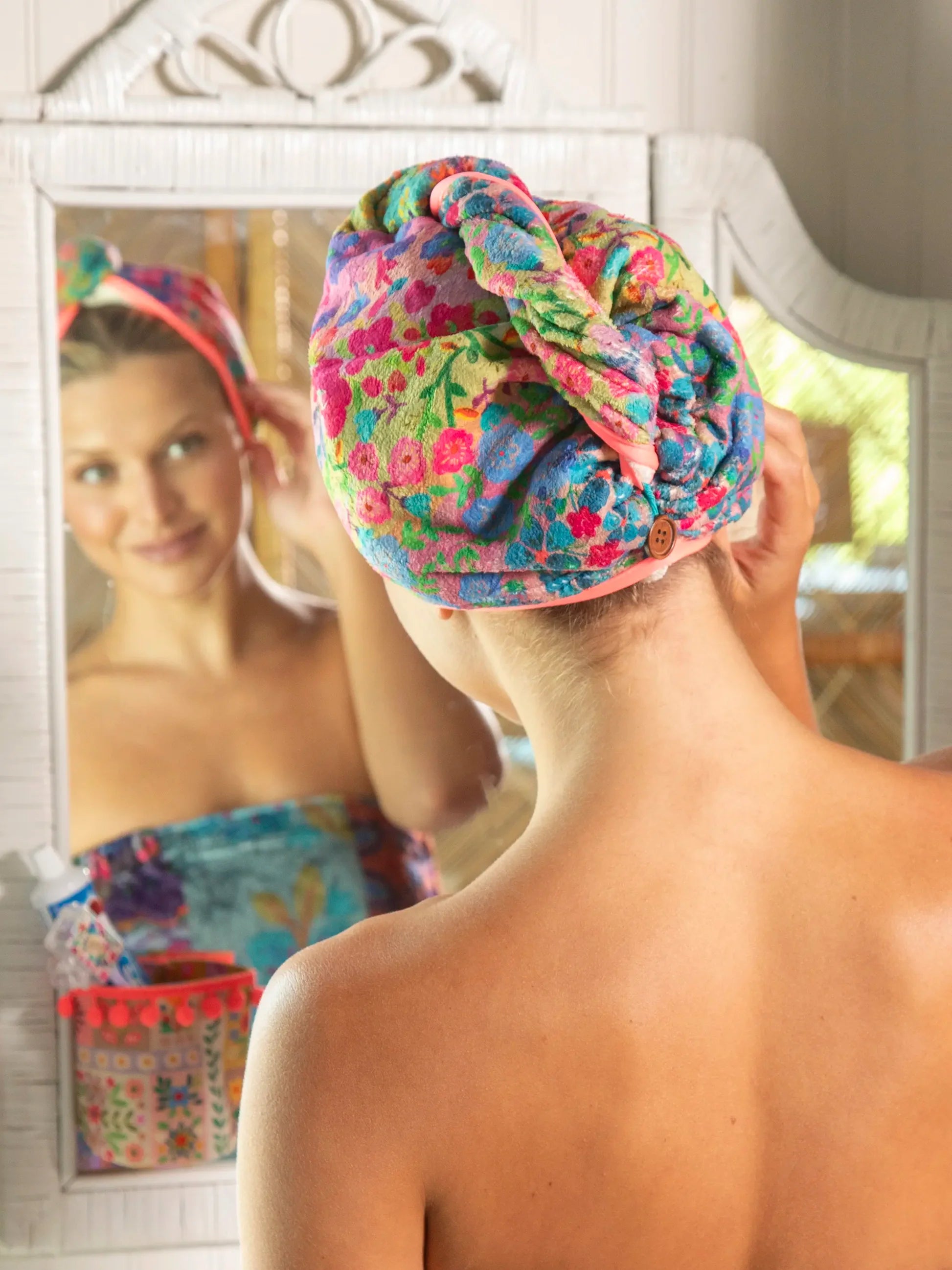 Microfiber Hair Towel Wrap - Rainbow Floral Rows