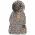 Multi Color Feather Knit Pom Beanie: Lt. Grey