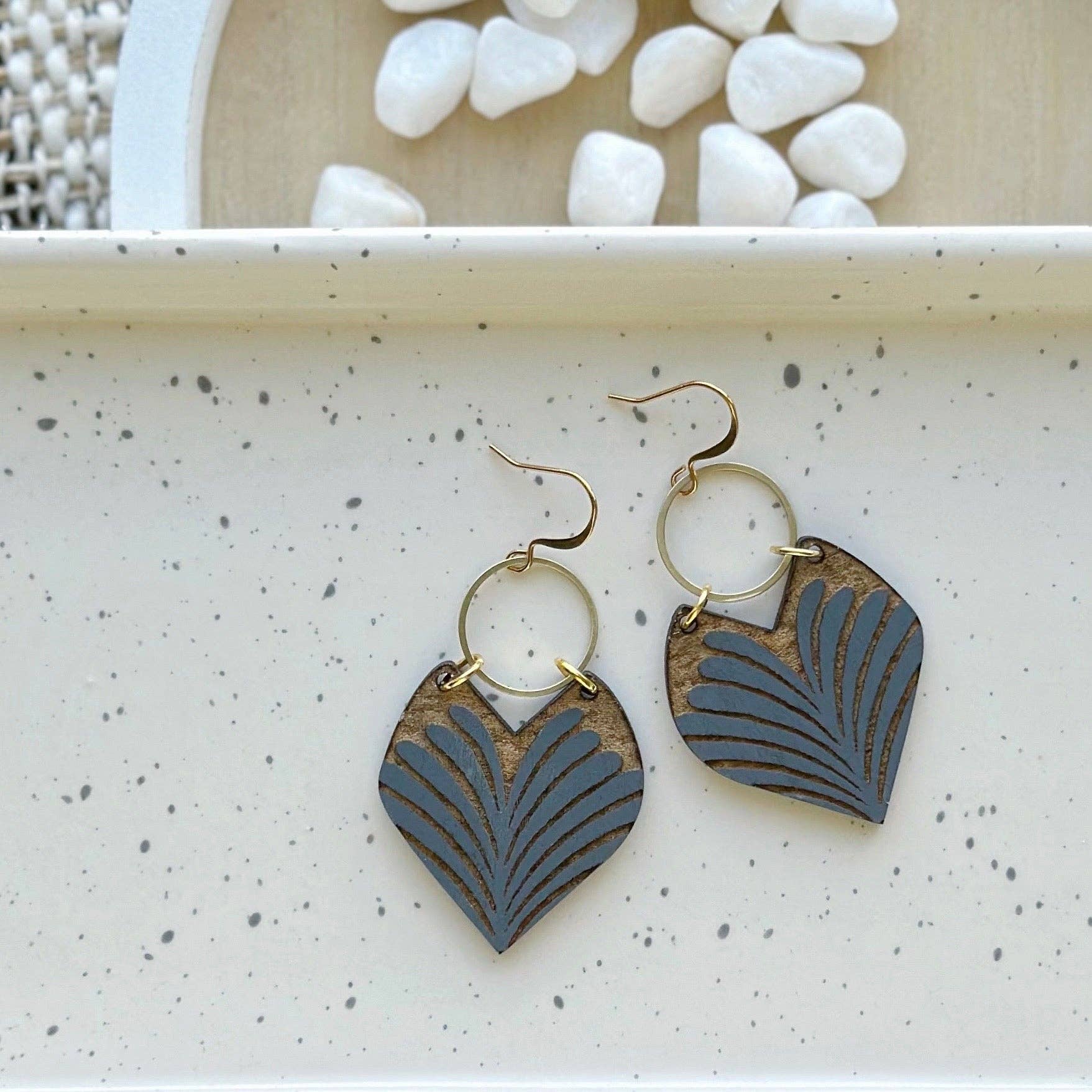 - Made from hand painted basswood, raw brass, and hypoallergenic gold-plated brass ear wires.
