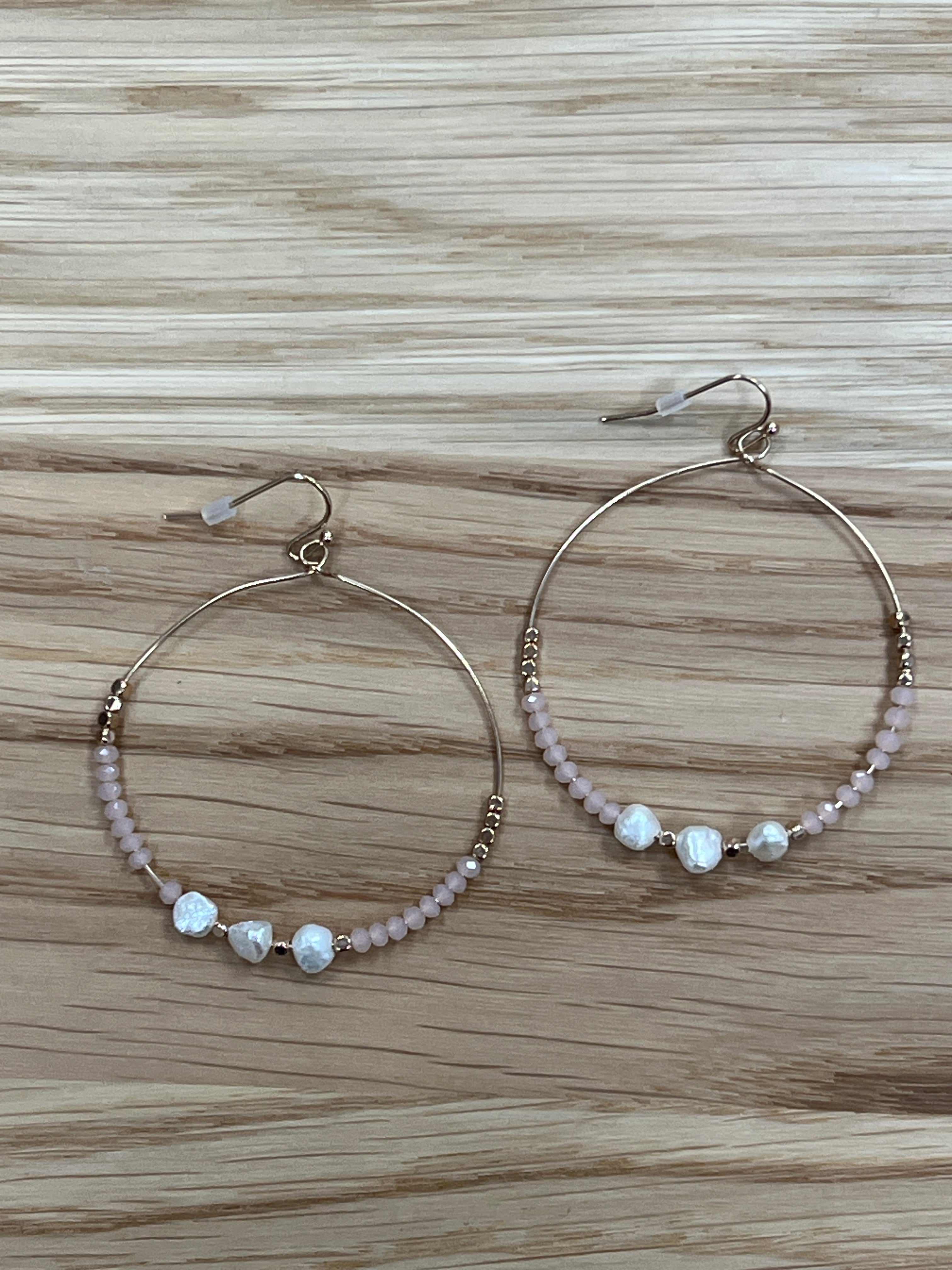 Kat + Bryn Pink Beads & Pearl Hoop Earrings