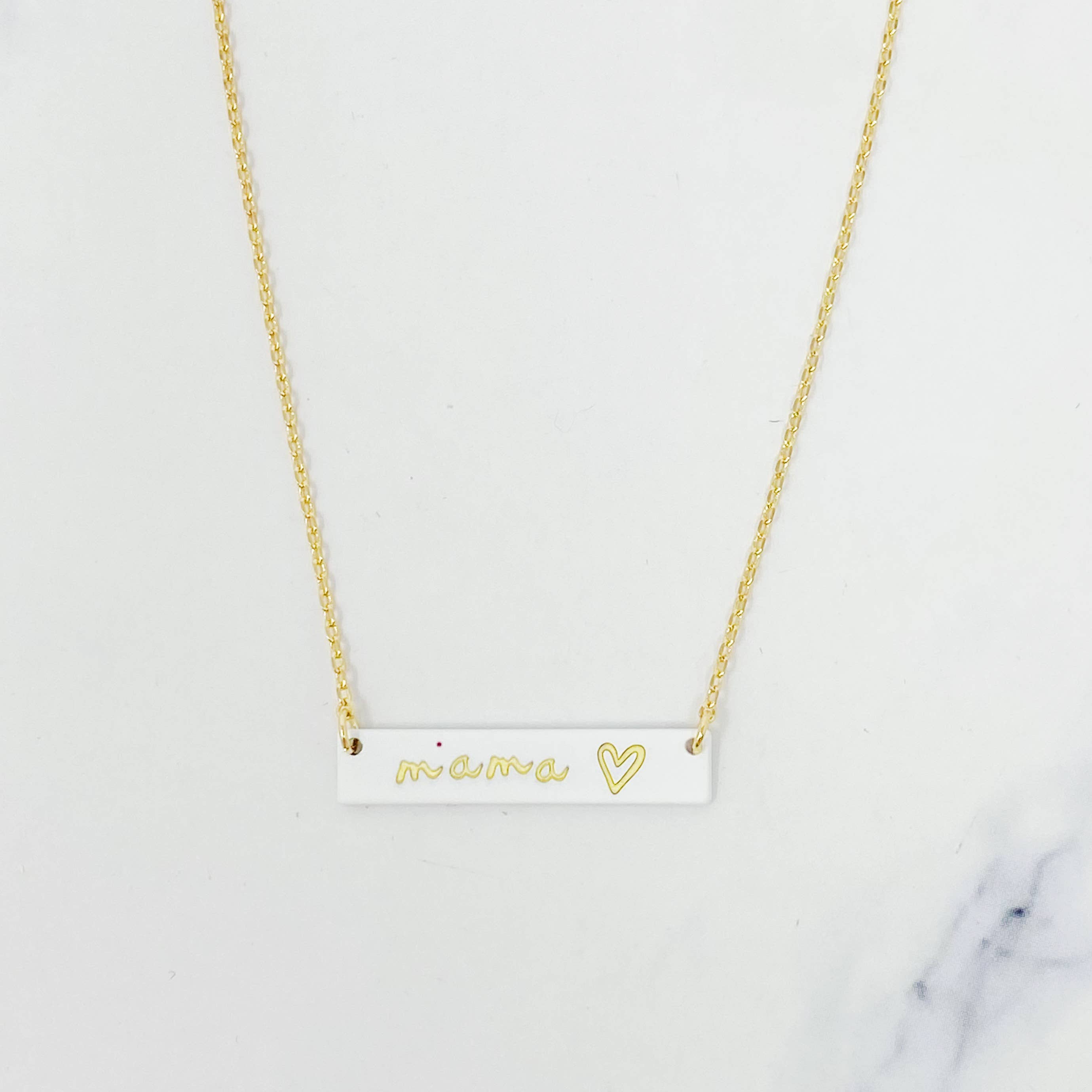 Hello, all mothers! This bar necklace with MAMA❤️ gold engraving is absolutely adorable!