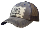 Vintage distressed trucker cap "Back Roads & Bonfires"