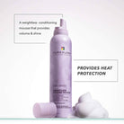 Conditioning mousse with heat protection that provides weightless volume and adds shine.